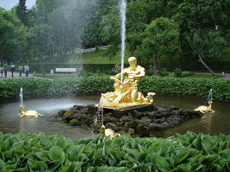 Фонтан Нептун занимает центральное место в Верхнем саду. Нептун расположен между Межеумным и Дубовым фонтанами.